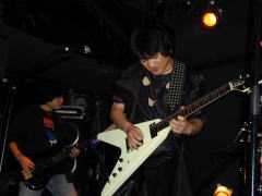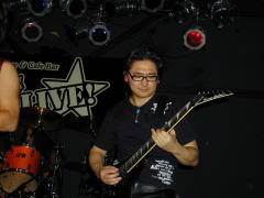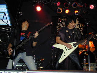 | 今回はデンマークが世界に誇る重厚なハードロック、Pretty Maidsのカバー。今のマイマイのメンバーが6人である、という理由だけでこのバンドのカバーを決めたのだが、日を追うごとに個々に後悔の色を濃くしていった。私に至っては、このページの背景画像でもあるかれらの1stフルレンスアルバム以外は全て新しすぎて分からない状態であったため、さらには1stアルバムと、それ以降では微妙に音楽性が変わっていることも、このシワの少ない脳みそを混乱に至らしめた。 おまけに今回は全曲をピック弾きにするなど、環境の変化も手伝って、コード進行を覚える力を言い訳を作り出す力に変えてしまうという状態であった。 今回から新加入ボーカリストのハーディも、Pretty Maidsってナニ?状態、またマイマイメンバーとして初お目見えであるというプレッシャーもあり、スタイルづくりに相当に苦労していたようだ。 初期Pretty Maidsは6人編成で、選んだ理由の通り、ギター×2にキーボードあり、とメロディパートは重厚である。今回はキーボードにシンセを導入することで、かれらの曲でよく使われるオーケストラやSEをライブで再現できるため、今回もナガノッチに頑張ってもらってトライすることとなった。 今回のハコは初めて使わせていただいた、大阪は心斎橋にあるクラブアライブ。フロアが広く、ステージも広くて余裕をもってパフォーマンスが出来そうだ。 我々の出番は3バンド目、19時から。他のバンドのみなさんは、ヴィジュアル系や女の子バンド、デスメタルっぽいのやら様々であるが、楽屋入りしてみなさん共通していたのは、とにかくダーク系統なお化粧に時間をかけてましたなぁ。私らは最後の悪あがきで曲構成のチェックに邪念、いや、余念がなかった そうするうちにもライブが始まり、いつもマイマイをサポートしてくれる面々が客席に見え、ホッとするのもつかの間、とにかく曲を終えるまでハラハラのドキドキな曲が続く。 セットリストは以下のとおり。 2.Love Games 3.Sin-Decade 4.Please Don't Leave Me 5.Future World 6.Red, Hot And Heavy ![]() ![]() ![]() それでもなんとか6曲を終え、あれだけ緊張していたハーディも実にカッコいいパフォーマンスを見せてくれた。マイマイのフロントマンとして、これからも活動をつづけていけるのが楽しみである。ナガノッチのシンセやオルガンは我々のアドレナリン放出の源となったし、tessyやEx-Karman(「かーまん」から改称^^;)のギターはハモリを醸しだし、ガッキー(「シモ」から改称^^;)のドラムスもツーバスが見事に吼えていた。 そして、へろへろな我々を客席からその雄叫び声援で熱くサポートしてくれた「みつをプロジェクト」(昨年のライブで対バンであったメンバー)の面々にも心から感謝する次第である。 反省すべきは反省するとして、次につなげるパワーへ転換して、2008年も出来れば1回以上はライブしようねと、ライブ後の打ち上げでは記憶不足でレポートもままならない程、ビールに身を浸す我々であった。 ![]() まっちゃん tessy ハーディ ![]() Ex-karman ナガノッチ ガッキー |